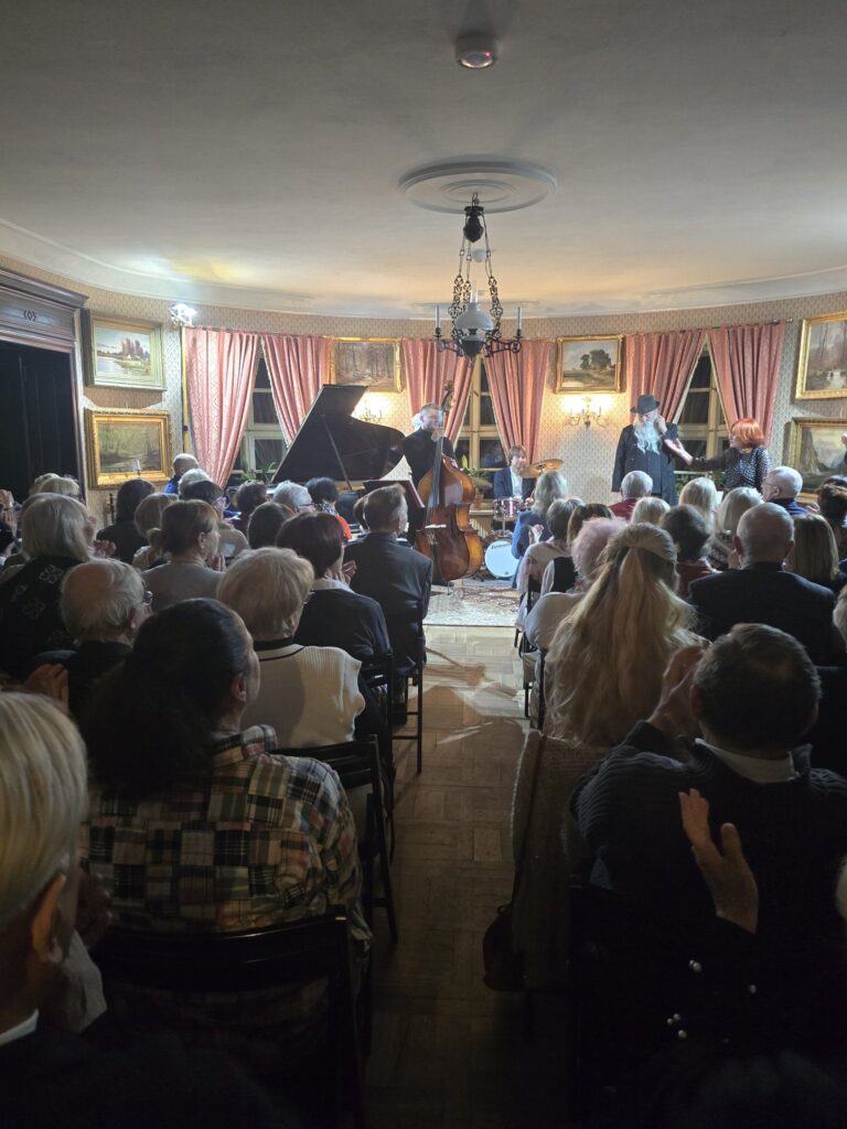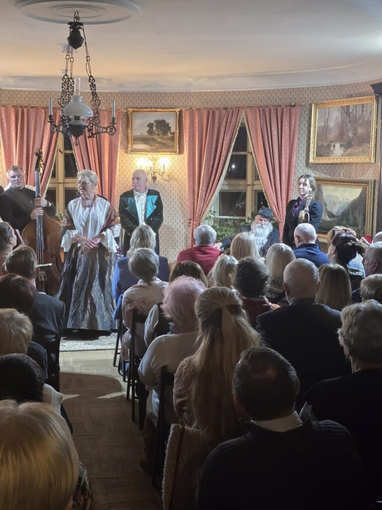 Władysław hrabia Zamoyski to postać nietuzinkowa, o której można mówić dużo i na wiele sposobów. Stowarzyszenie Teatralne Legion wraz z zespołem Czamanova Jazz Trio postanowiło opowiedzieć o hrabim „na góralską nutę”, przetlając scenkami i anegdotami o Władysławie Zamoyskim jazzowe utwory, inspirowane Podhalem, Tatrami i samym hrabim. Muzyka poniosła nas w świat szemrzących strumyków, szumu halnego, góralskich tęsknot, paryskich buwarów i jeszcze dalej. Na wydarzenie zaprosiliśmy 29 listopada 2024, na godzinę 18.00 do klimatycznego Muzeum Ziemi Średzkiej „Dwór w Koszutach”, który bardzo szybko wypełnił się wspaniałą publicznością, która została zaproszona na poczęstunek w jazzowym klimacie. Po koncercie, w kuluarach można było podzielić się wrażeniami, porazmawiać z artystami oraz z autorem książki „Polski władac” Piotrem Okulewiczem. W tle rozmów wyświetlana była przygotowana wcześniej prezentacja z widokami Tatr i Podhala, archiwaliami z Władysławem Zamoyskim. Nad wszystkim czuwali, jak „Dobre Duszki” pracownicy muzeum. Atmosfera, zarówno na koncercie jak i po nim była wyjątkowa. Aż żal było rozstawać się i opuszczać gościnny dwór.